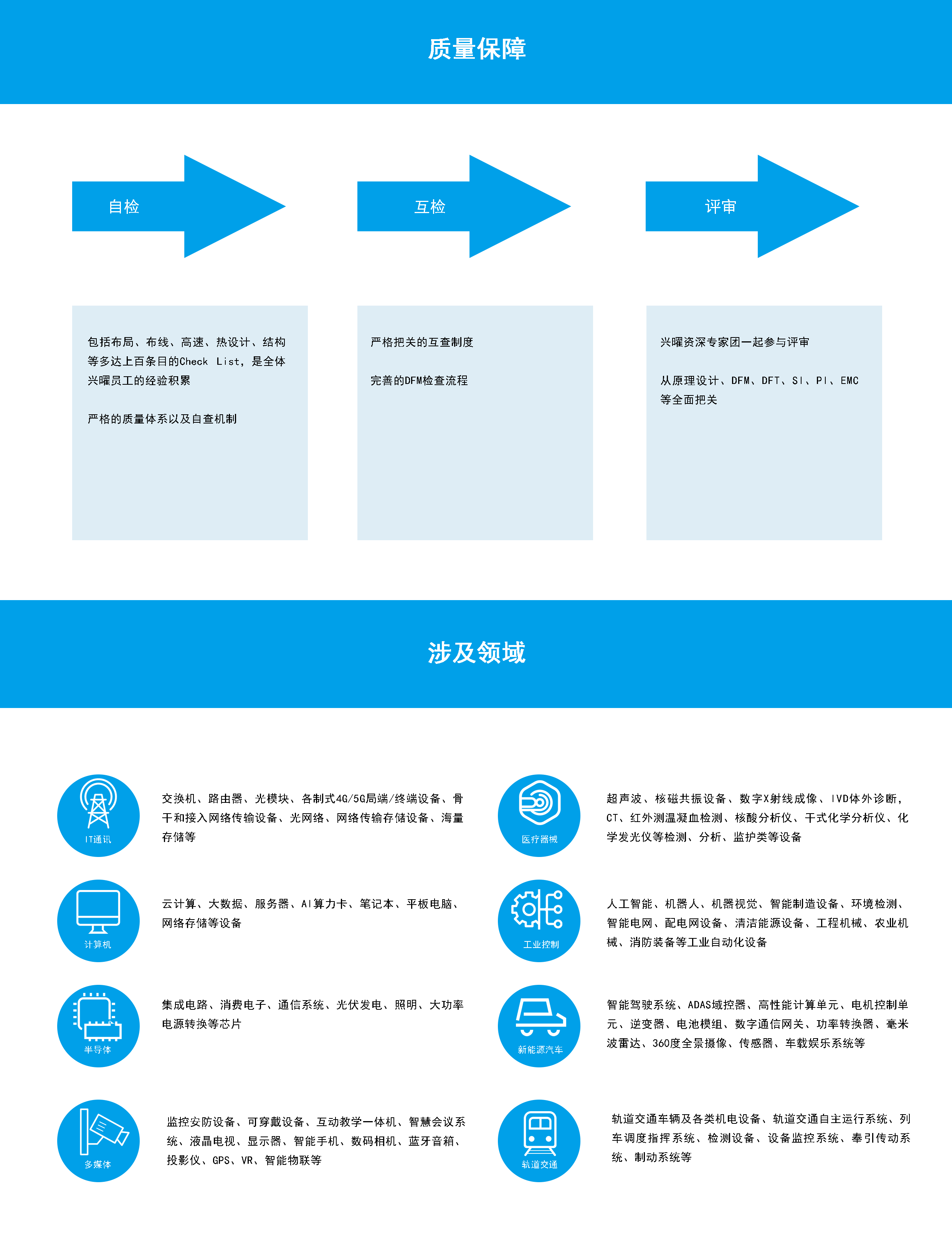 原材料/产品质量保证 坚持从源头保证品质,板材全部采用建滔、生益和金安国纪A级料,符合UL和ROHS标准,正品可追溯;产品全部采用双重测试,100%电测和AOI检测,品质有保证。