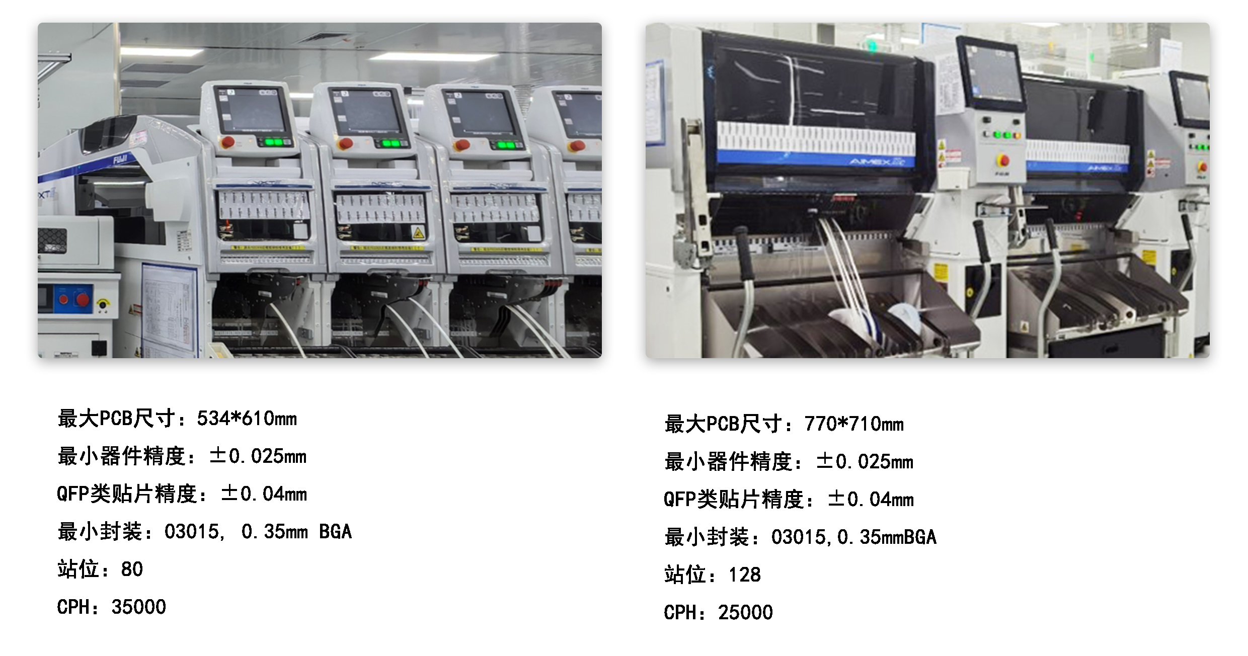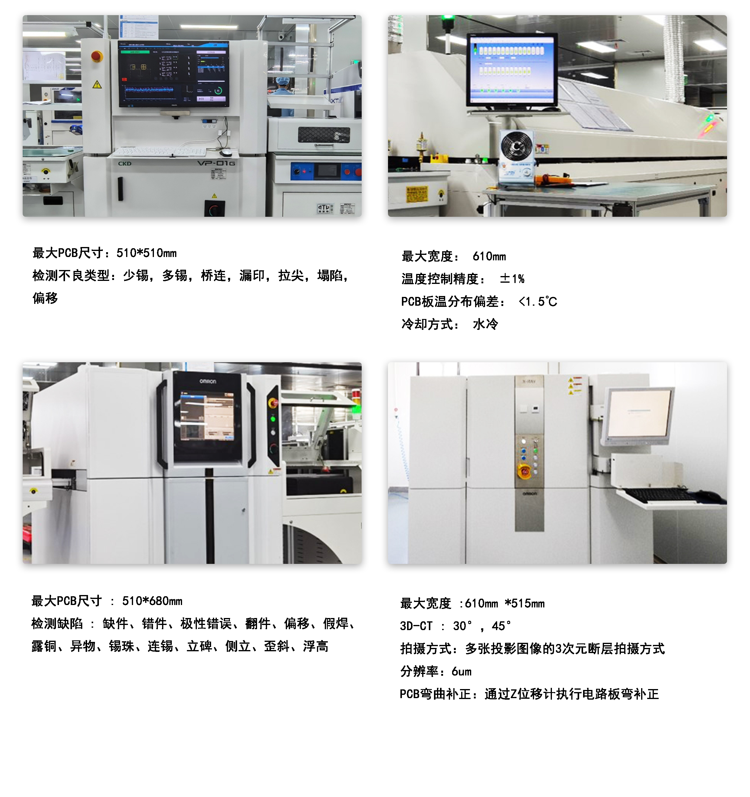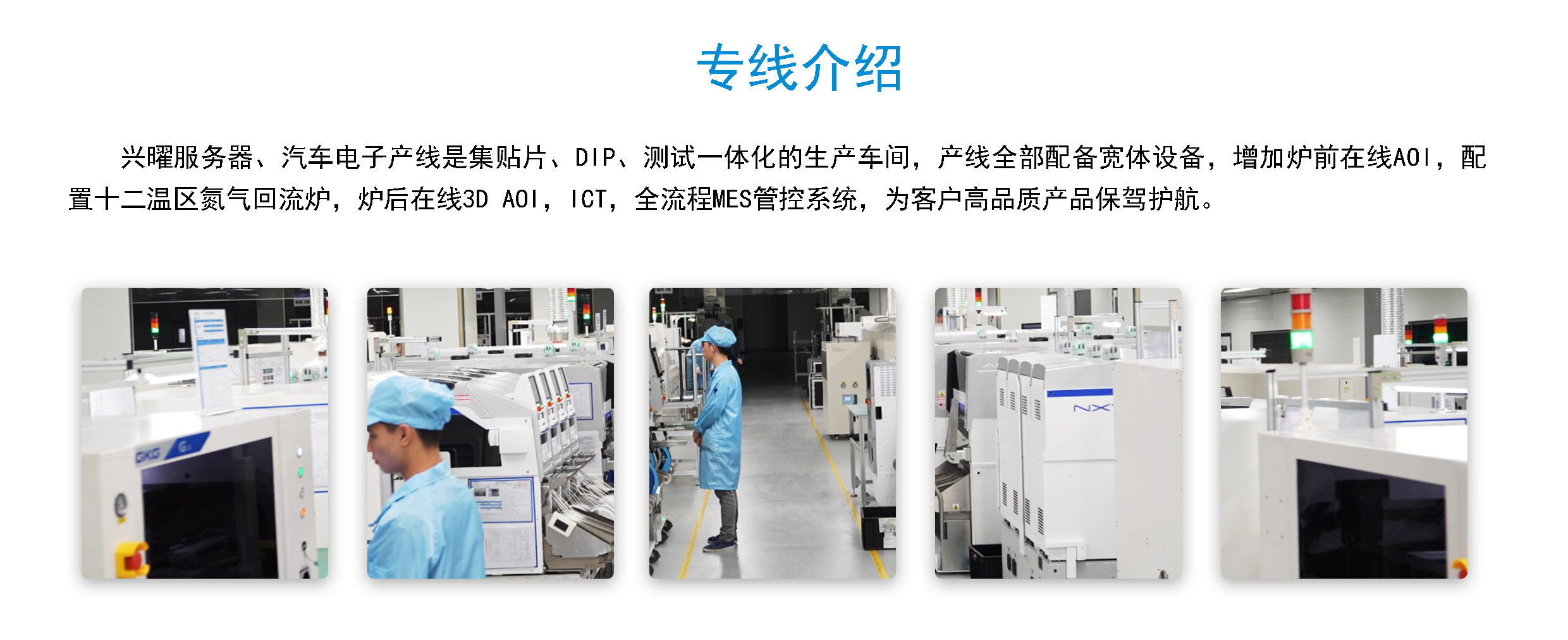 兴曜服务器、汽车电子产线是集贴片、DIP、测试一体化的生产车间,产线全部配备宽体设备,增加炉前在线AOl,配置十二温区氮气回流炉,炉后在线3D AOI,ICT,全流程MES管控系统,为客户高品质产品保驾护航。